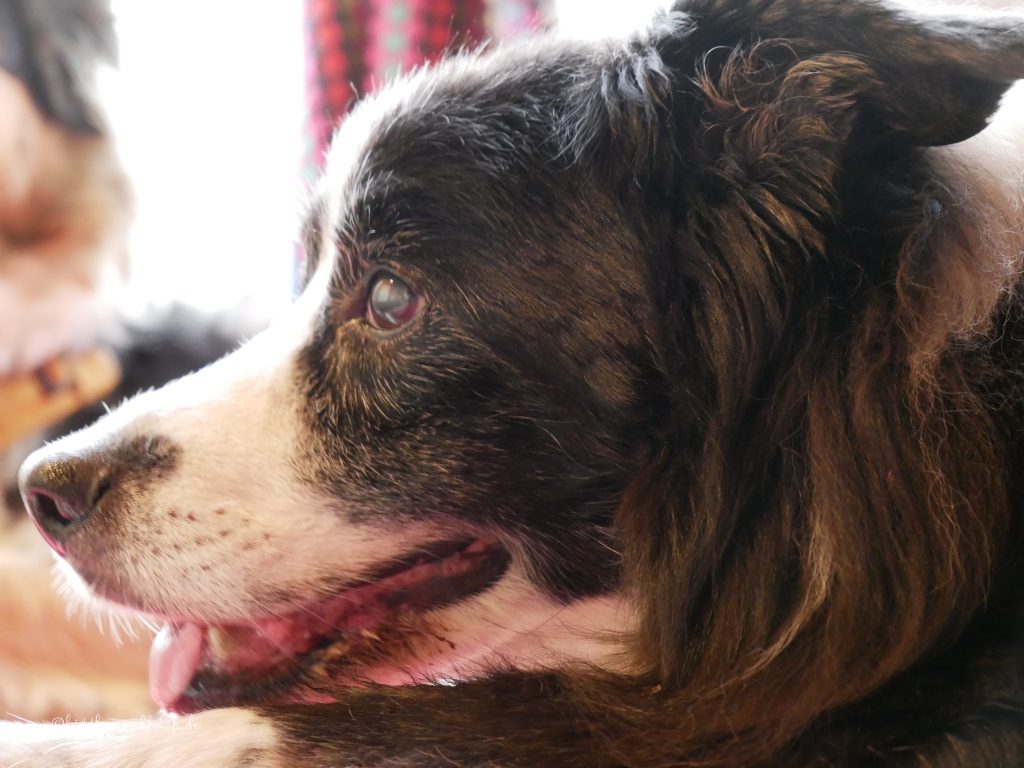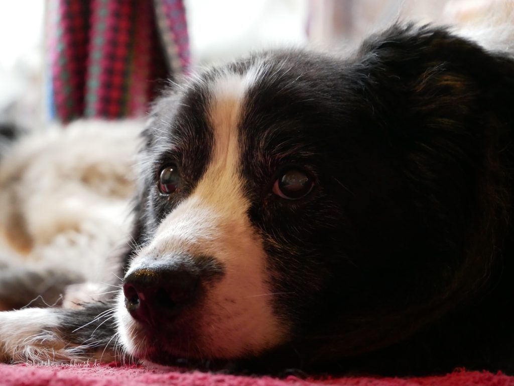 Viele Jahre mit einem ganzen Hunderudel sind leider vorbei, Minka ist nun alleine wenn Jay zu Besuch kommt.